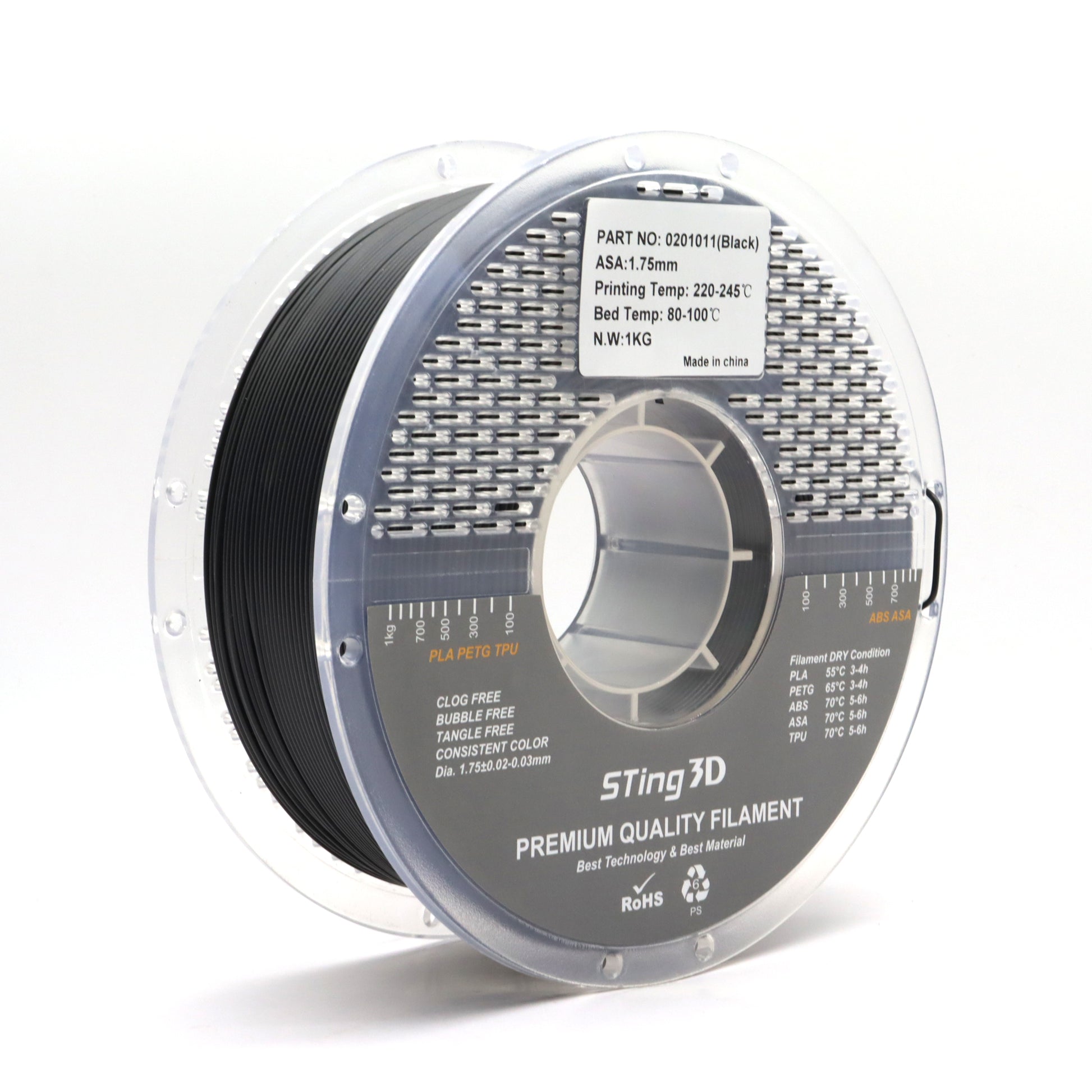 Product Overview: Upgrade your 3D printing projects with STING 3D ASA Filament, the ultimate choice for high-performance, weather-resistant prints. Known for its exceptional UV stability and impact resistance, ASA (Acrylonitrile Styrene Acrylate) is perfect for creating durable, long-lasting models that can withstand outdoor conditions. Ideal for functional prototypes, automotive parts, and outdoor applications, STING 3D ASA offers superior quality and reliability for your most demanding projects.