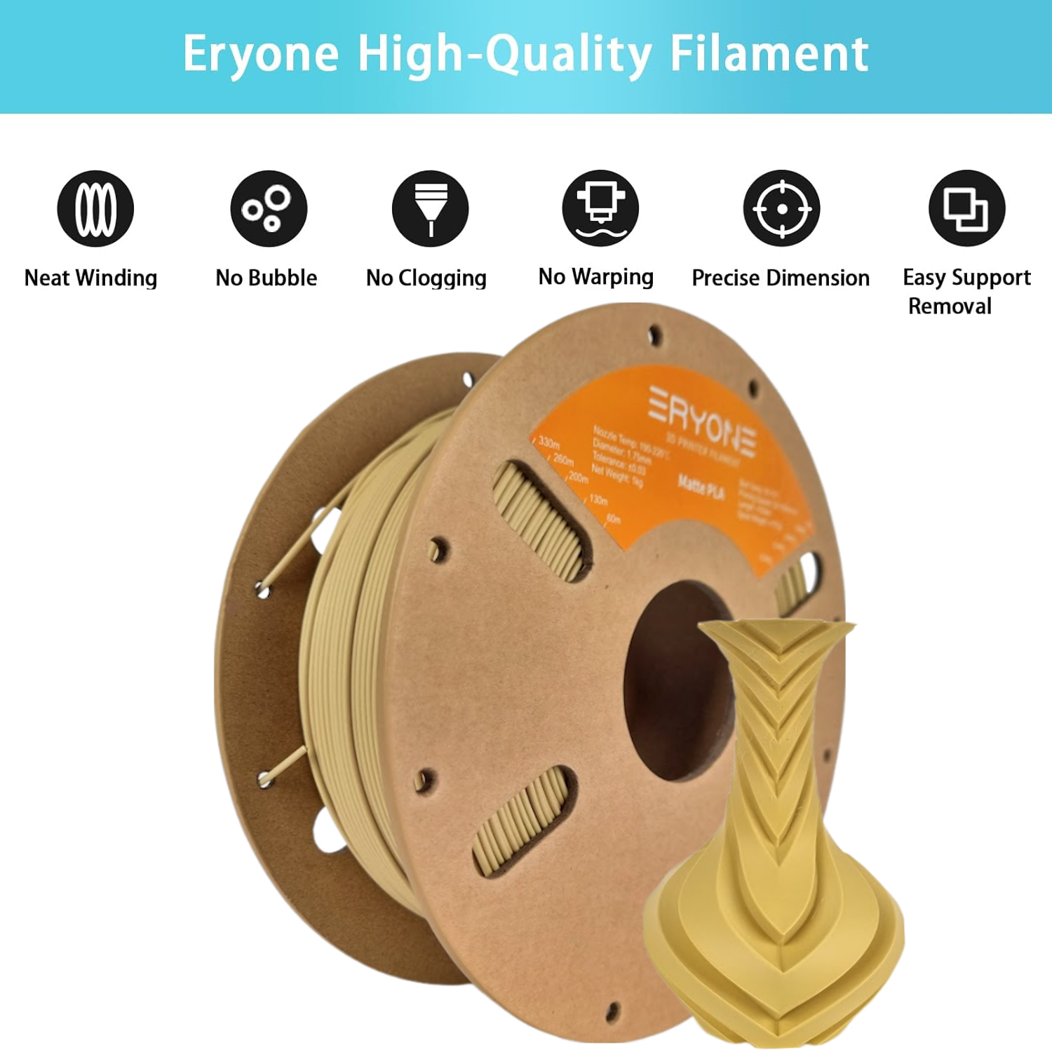 Upgrade your 3D printing game with ERYONE PLA Matte. Experience a matte finish and superior layer adhesion for high-quality prints. Perfect for all your creative projects, this filament offers a unique, natural appearance to bring your designs to life.