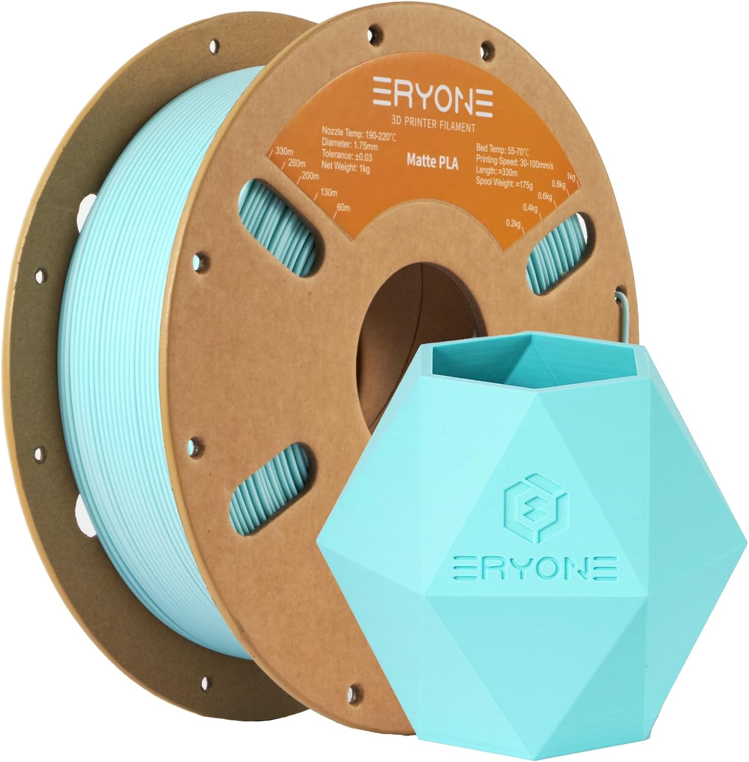 Crafted with ERYONE PLA Matte filament, our Mint Green color adds a touch of uniqueness to your 3D prints. The matte finish produces a sophisticated look, making it perfect for artistic projects. Experience the quality and precision of ERYONE PLA, suitable for a range of 3D printers.